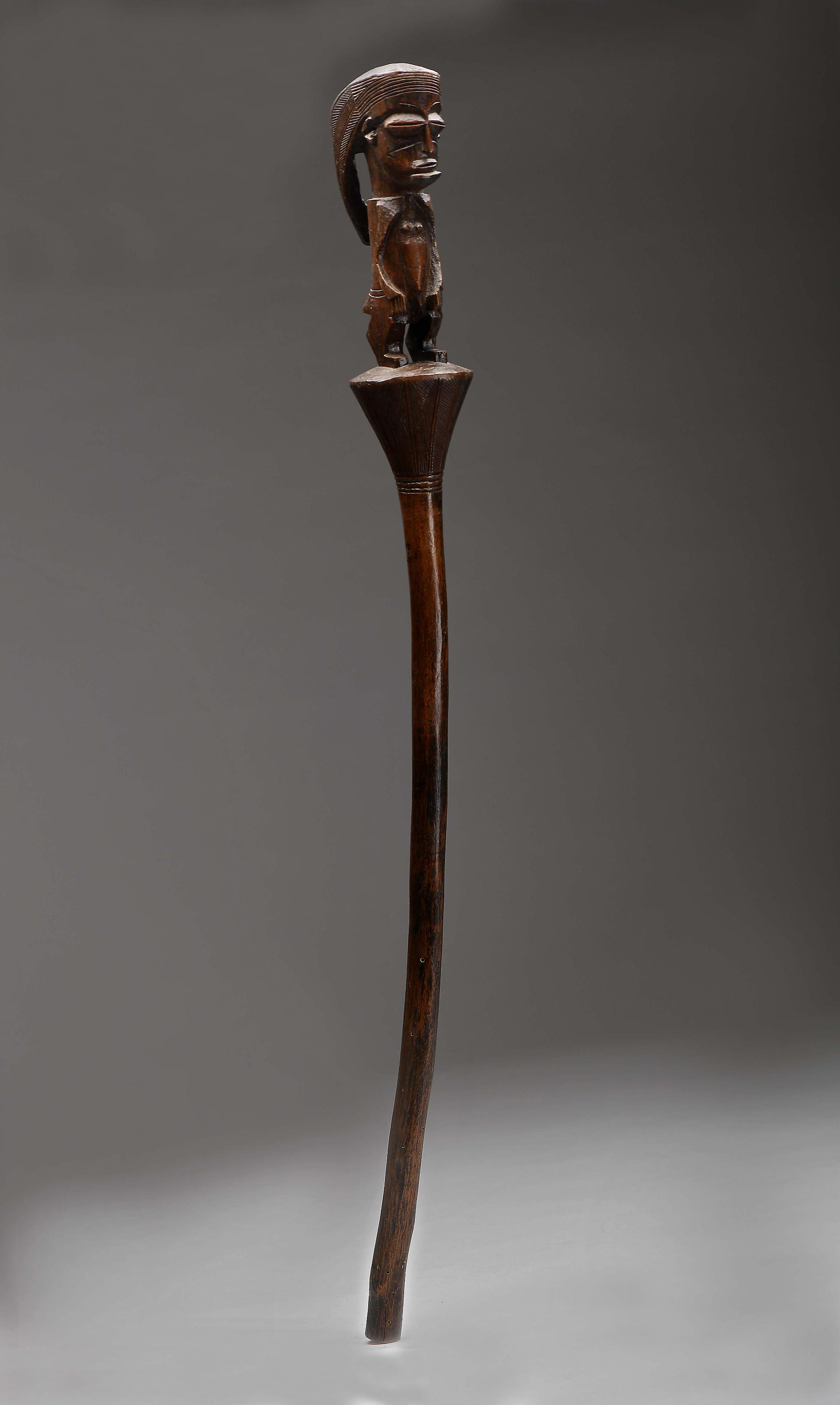 Bastão "Figura feminina" madeira entalhada Angolano - Ovimbundo séc. XIX vestígios de insectos xilófagos Dimensões (altura x comprimento x largura) - 90 cm