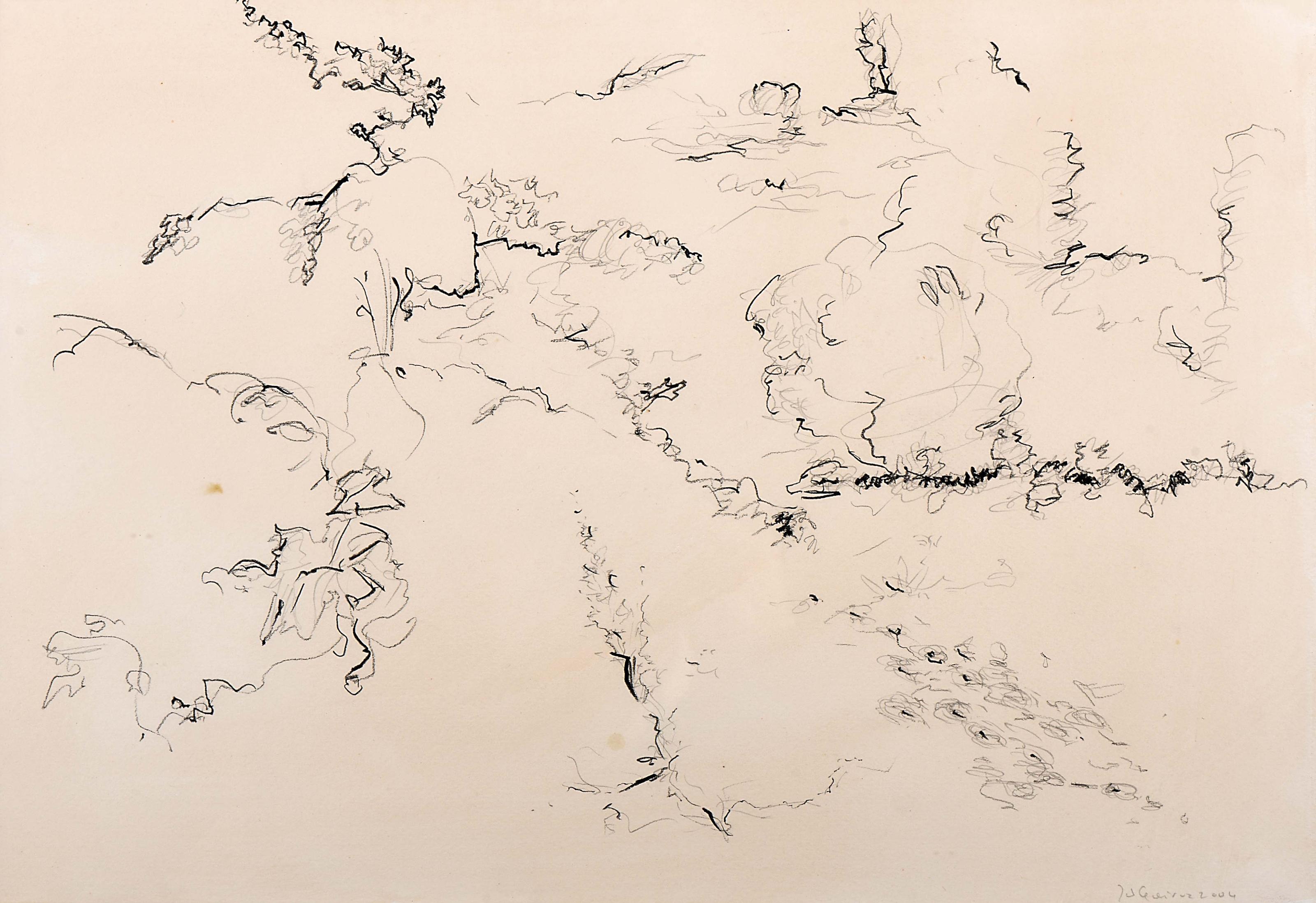 JOÃO QUEIROZ - 1957-2025 Sem título carvão sobre papel pequena mancha no suporte assinado e datado de 2004 Dimensões (altura x comprimento x largura) - 32 x 45,5 cm