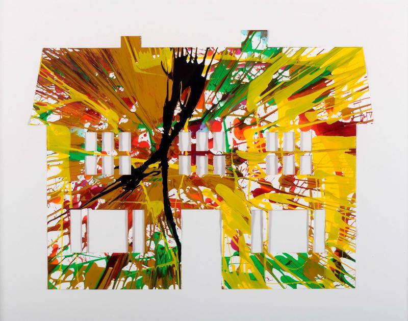 DAMIEN HIRST - NASC. 1965 "House Spin Painting" (2009) acrílico sobre papel carimbo do Autor assinado, no verso, informando que a presente obra foi feita a propósito da inauguração da exposição REQUIEM, realizada no Pinkchuck ArtCenter, Kiev, de 25 de Abril a 20 de Setembro de 2009. Dimensões (altura x comprimento x largura) - (total) 51,8 x 69,2 cm