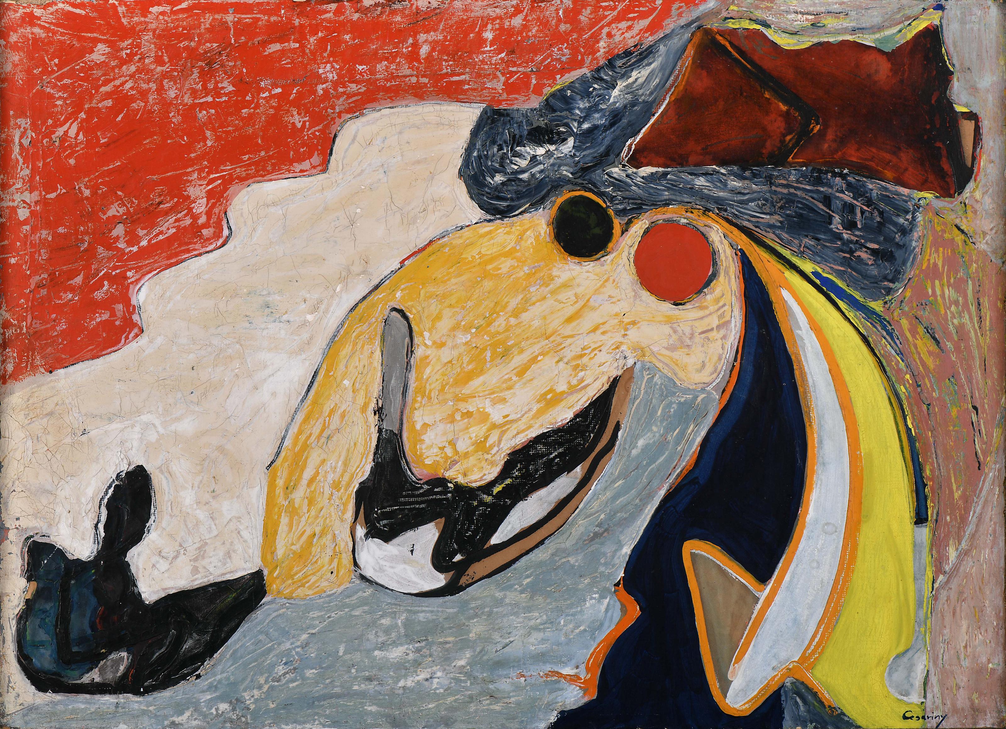 MÁRIO CESARINY - 1923-2006 "Soam galas amorosas - Expo Iluminações de Rimbaud #03" (1971) têmpera sobre papel colado em tela pequenas faltas na camada pictórica, algum craquelé assinada Dimensões (altura x comprimento x largura) - 49 x 69 cm Notas: Integrou a exposição "Iluminações de Rimbaud", realizada na Galeria São Mamede, Lisboa, 1971 - vd. https://www.saomamede.com/artista.php?id_artista=31#gallery-21 - consultado a 7-4-2026 às 10:40.