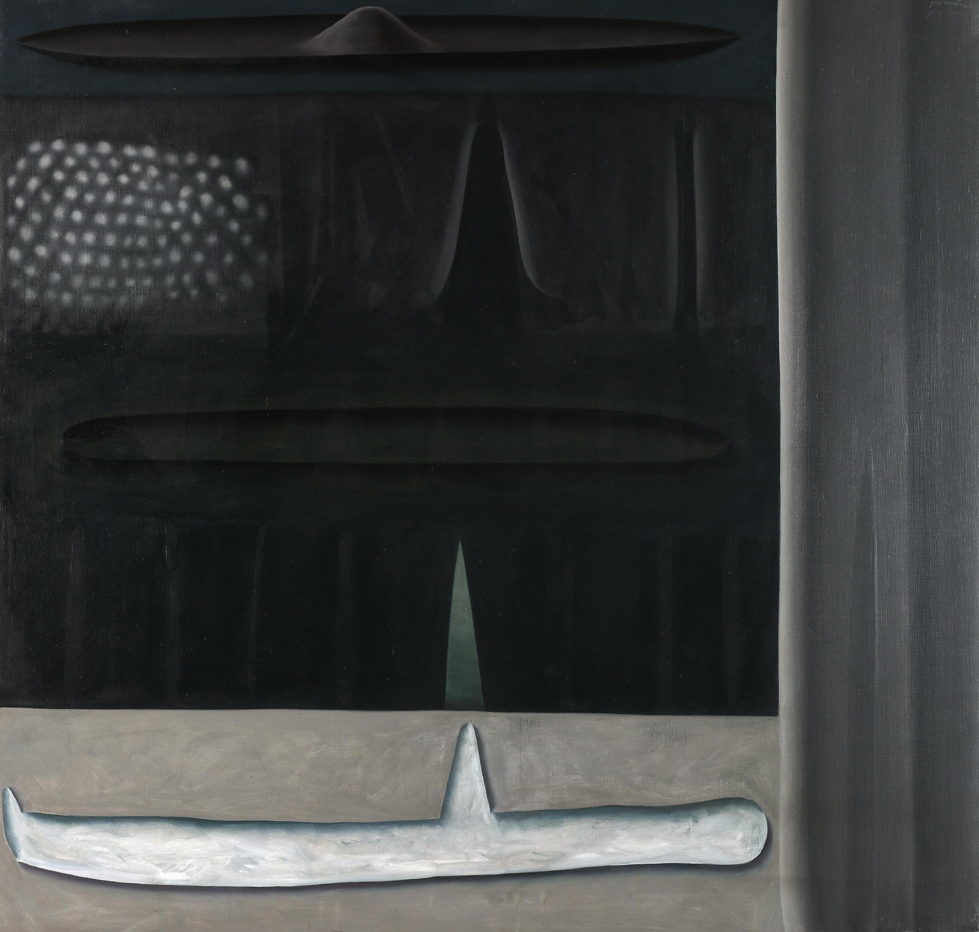 JORGE MARTINS - NASC. 1940 Sem título óleo sobre tela assinado e datado a estilete de 1985, reassinado e redatado de 1986 Dimensões (altura x comprimento x largura) - 150 x 150 cm