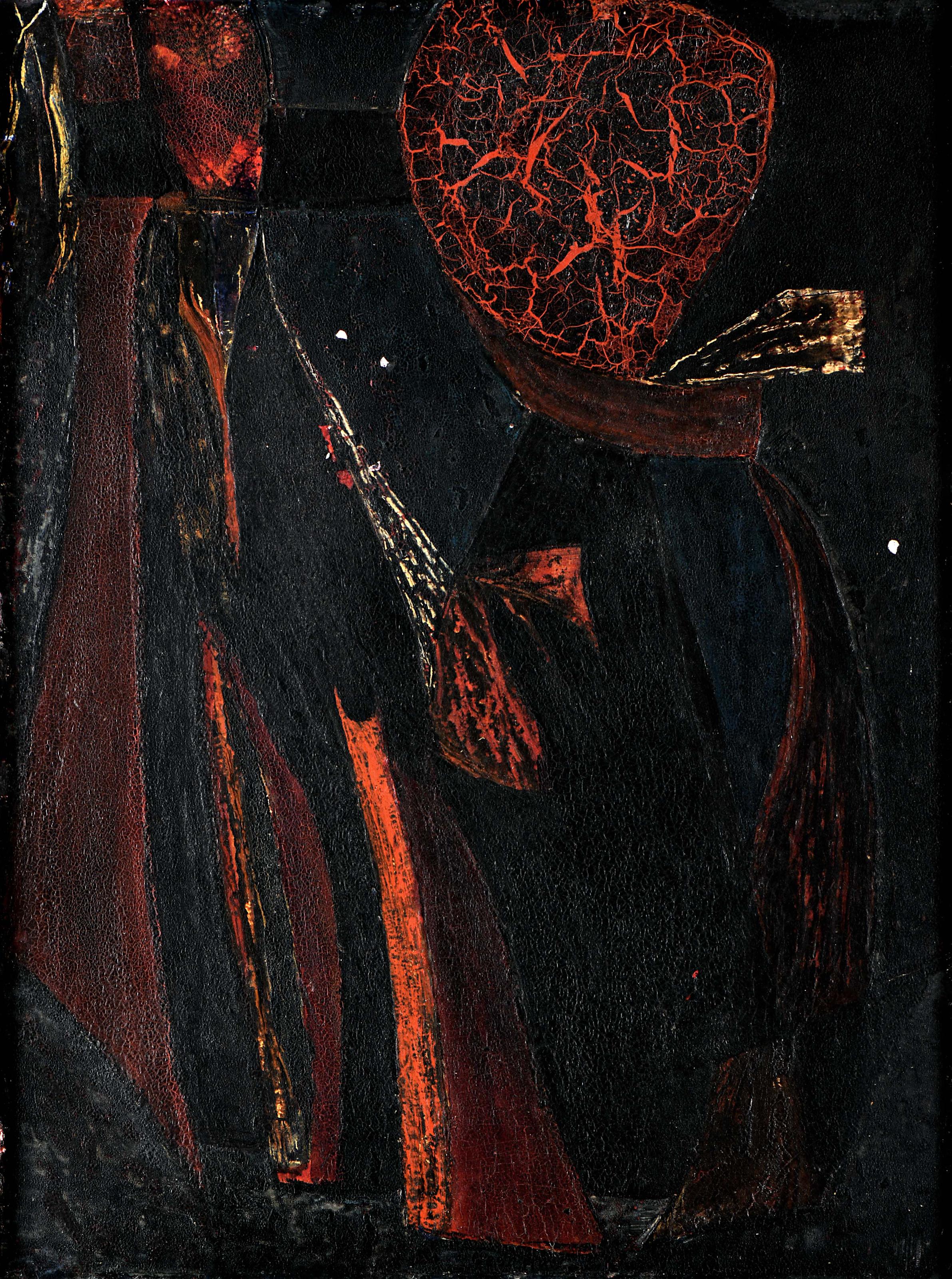 MÁRIO CESARINY - 1923-2006 Sem título acrílico sobre platex pequenas faltas na camada pictórica assinado, assinado e datado de 2000 no verso Dimensões (altura x comprimento x largura) - 40 x 29,5 cm