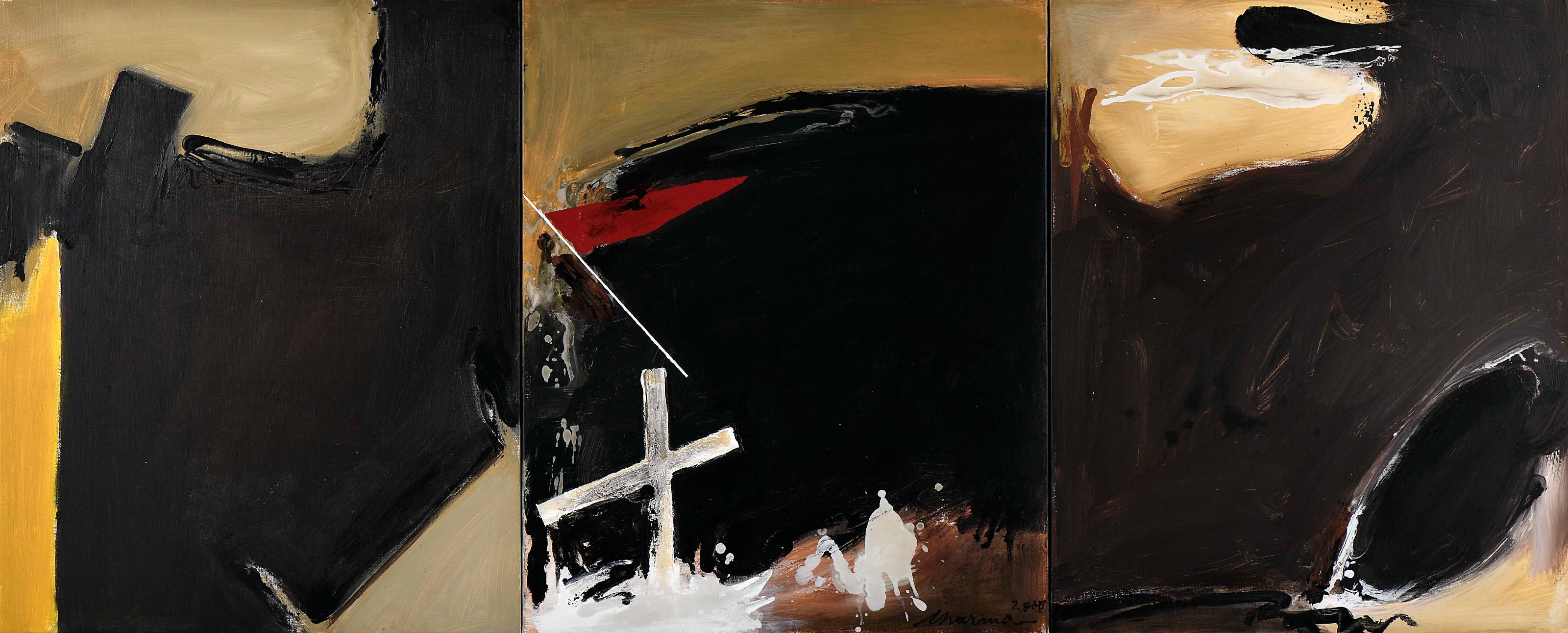 ANTÓNIO CHARRUA - 1925-2008 Sem título tríptico - óleo sobre tela assinado e datado de 2000 Dimensões (altura x comprimento x largura) - 73 x 180,5 cm