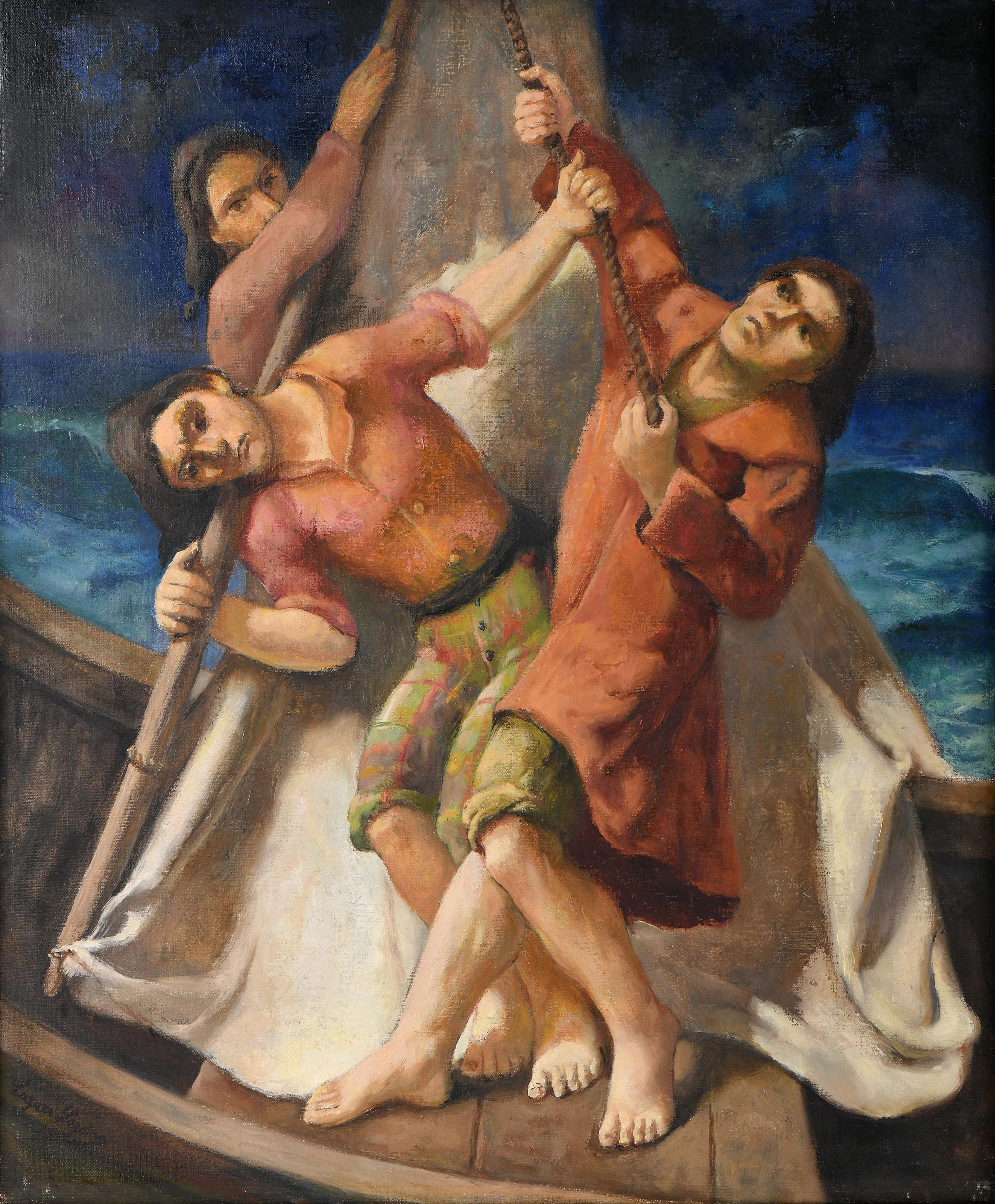 LÁZARO LOZANO - 1906-1999 Pescadores óleo sobre tela assinado Dimensões (altura x comprimento x largura) - 60 x 51 cm