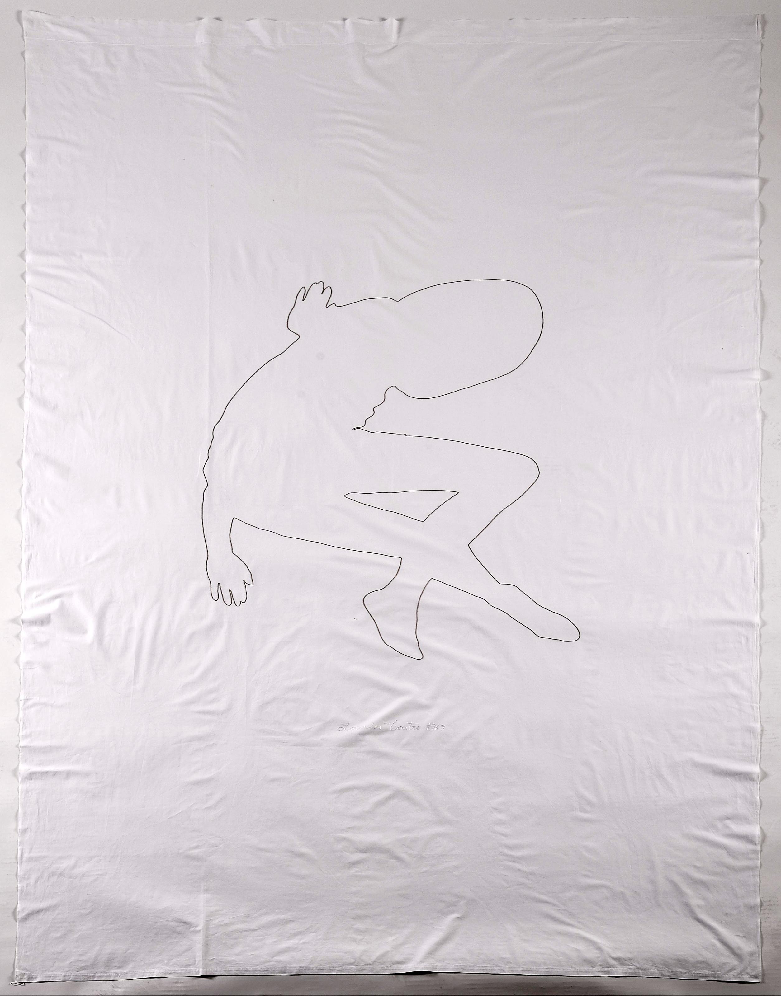 LOURDES DE CASTRO - 1930-2022 "Sombra deitada" lençol bordado à mão assinado e datado de 1969 Dimensões (altura x comprimento x largura) - 284 x 170 cm