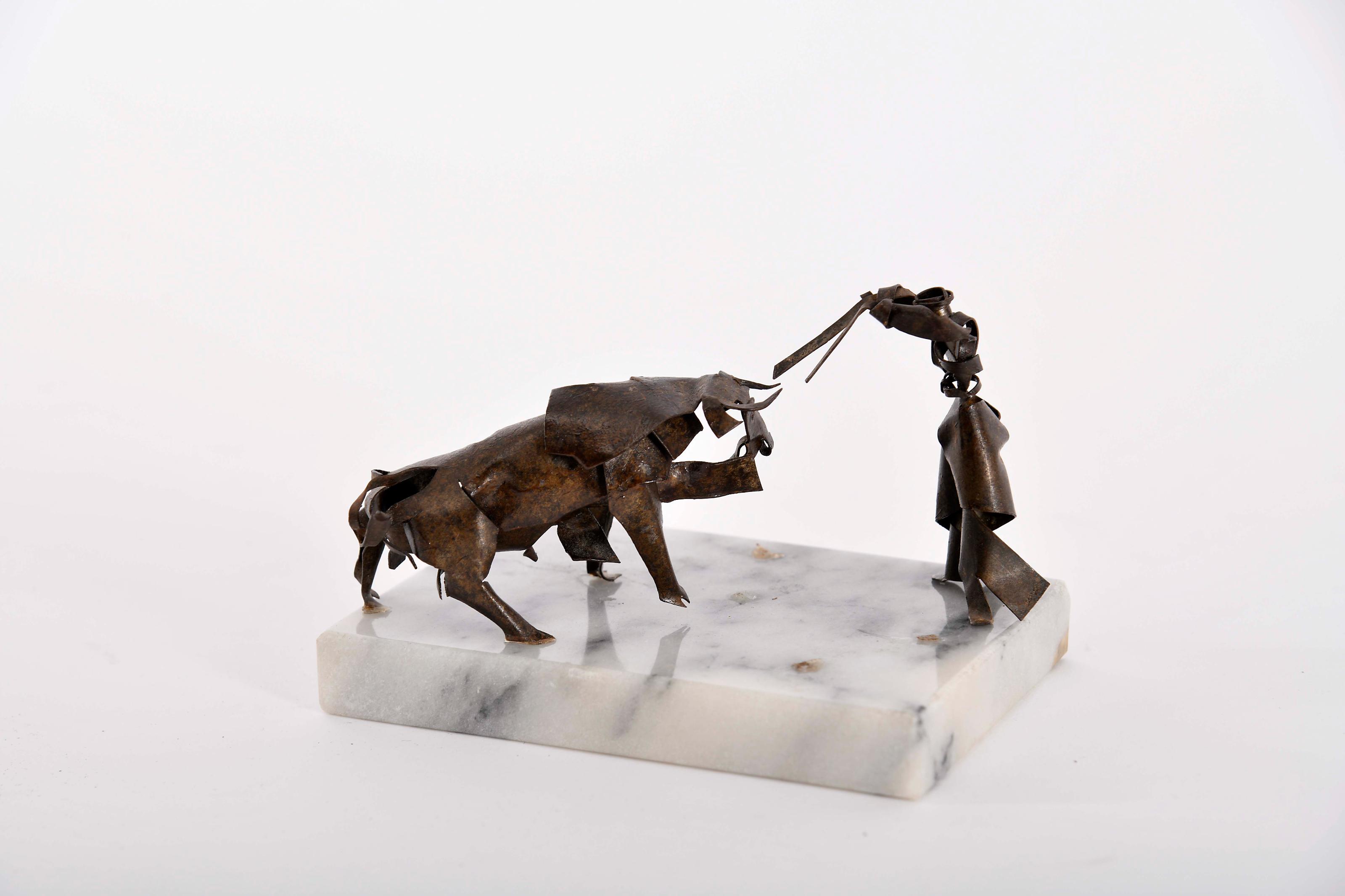 DELFIM MAYA - 1886-1978 "Citando para bandarilhas" escultura em folha de metal recortada base de mármore não assinada Dimensões (altura x comprimento x largura) - 7 x 12 x 8 cm Notas: vd. escultura semelhante em MAYA, Maria José - "O Modernismo de Delfim Maya". Caldas da Rainha: Liga dos Amigos do Museu José Malhoa, 2023, p. 88, fig. 68. Outra escultura semelhante integrou a exposição "Delfim Maya. Escultor do movimento - O Ribatejo na obra de Delfim Maya". Vila Franca de Xira: Câmara Municipal de Xira/Museu Municipal de Vila Franca de Xira, 2017, p. 58.