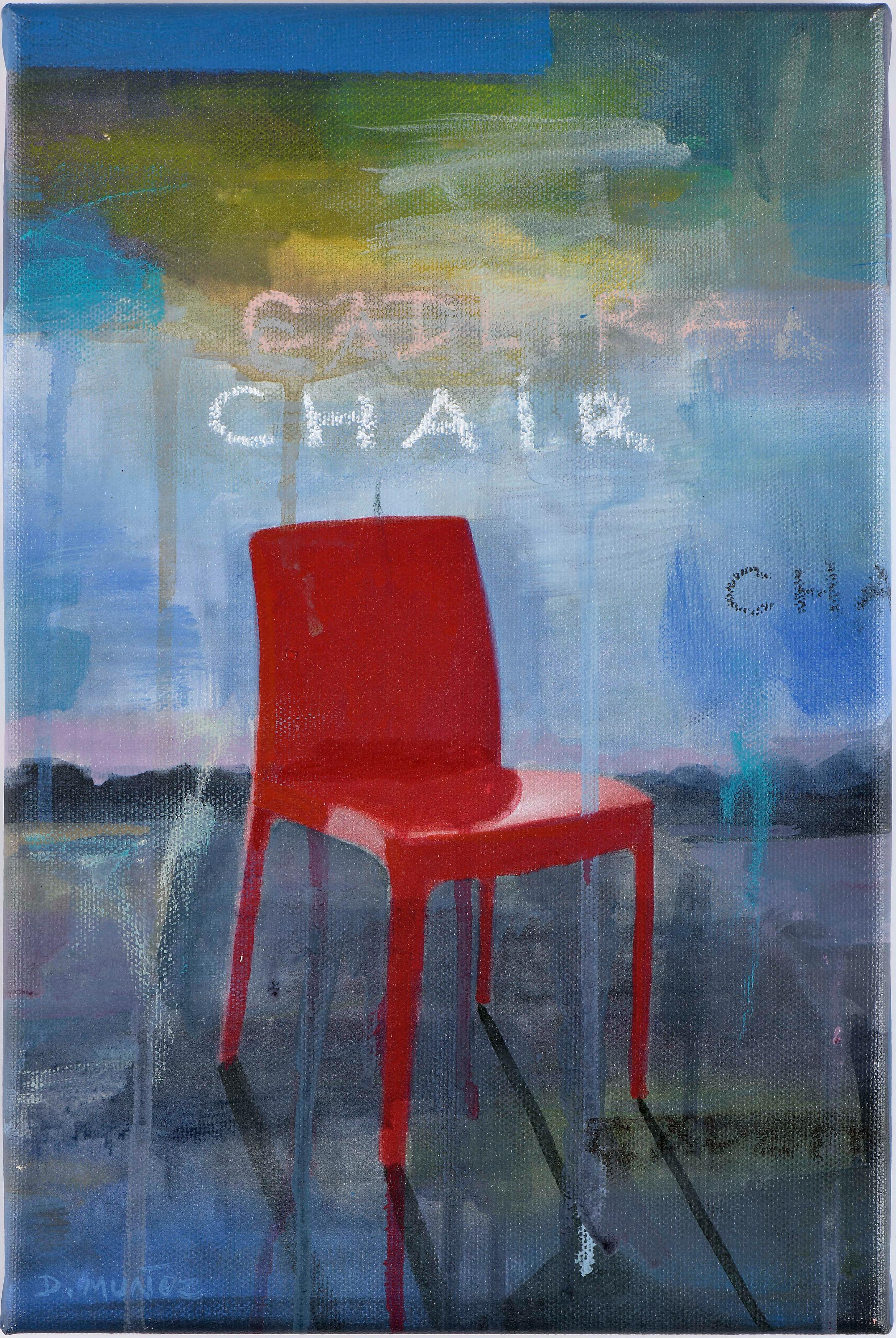 DIOGO MUÑOZ - NASC. 1973 "Cadeira" acrílico e pastel de óleo sobre tela assinado Dimensões (altura x comprimento x largura) - 30 x 20 cm Notas: Diogo Muñoz (Lisboa - 1973). O universo pictórico de Diogo Muñoz é um território de memória e imaginação, onde se cruzam referências históricas, culturais e pessoais. As suas obras articulam o real e o simbólico, o íntimo e o colectivo, transformando imagens conhecidas em novas leituras visuais. Nos últimos anos, aprofundou uma investigação plástica que integra elementos da cultura popular e da história da arte, num diálogo entre o passado e o presente.