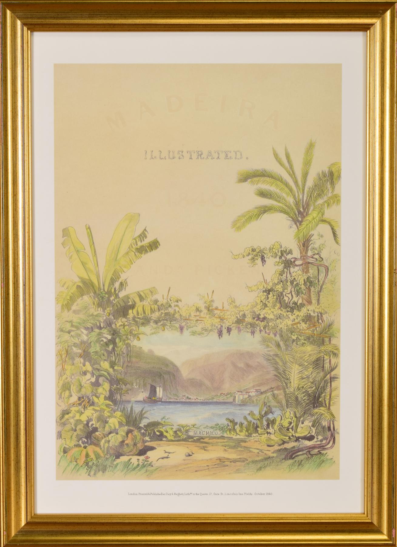 "Machico - Madeira ilustrated" estampa sobre papel publicada in"Nature & on Stone" da autoria de Andrew Picken (1815-1845), Londres, 1840 Dimensões (altura x comprimento x largura) - 53 x 39 cm
