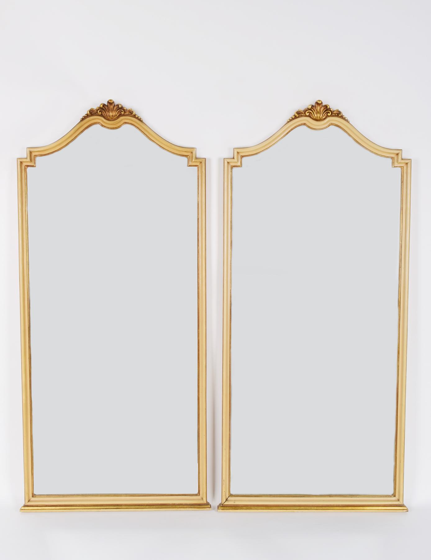 Par de espelhos madeira entalhada e dourada europeus séc. XX pequenos defeitos Dimensões (altura x comprimento x largura) - 143 x 67,5 cm