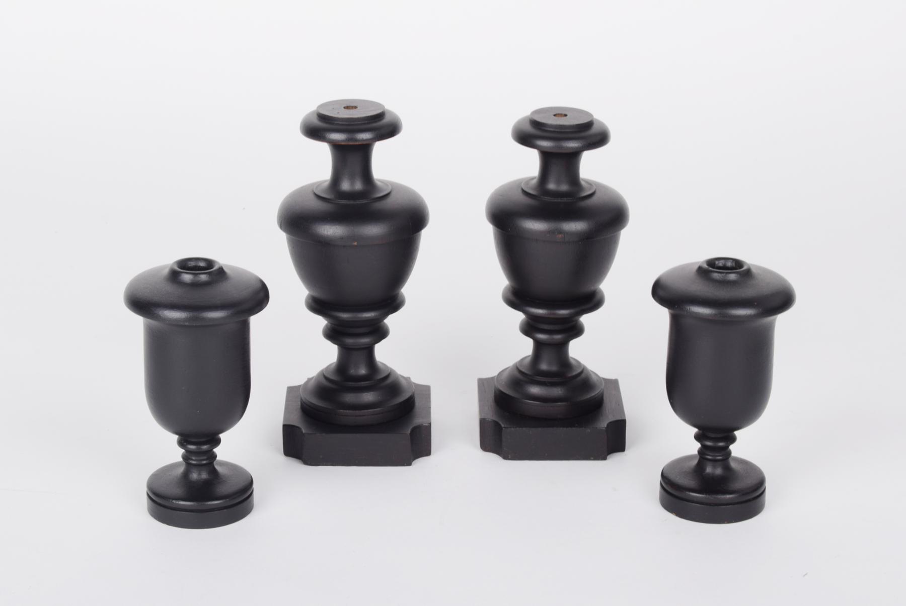 Quatro porta-palmitos madeira torneada e pintada de negro portugueses séc. XX Dimensões (altura x comprimento x largura) - 18 (maior) cm