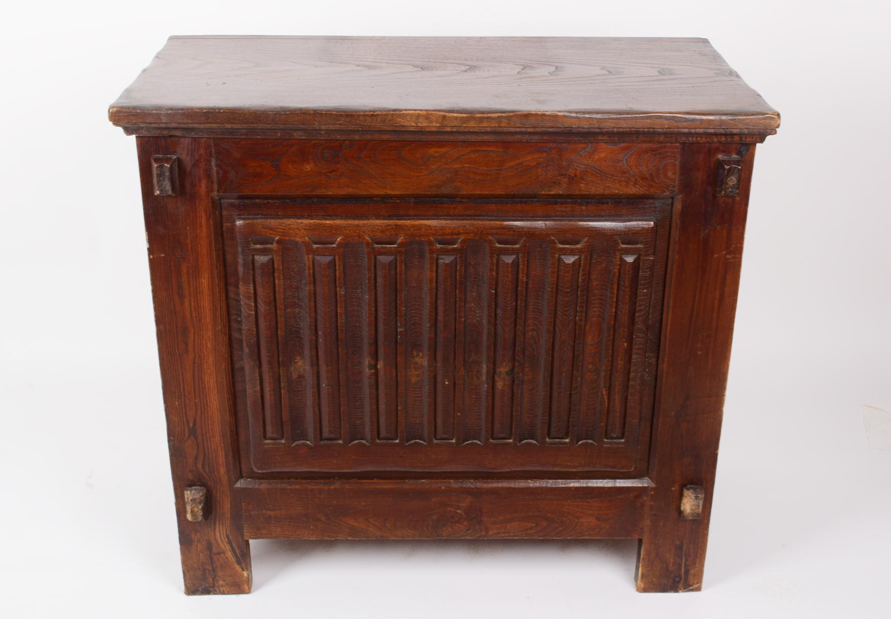 Arca rústica castanho com entalhamentos portuguesa séc. XX pequenos defeitos Dimensões (altura x comprimento x largura) - 90 x 100 x 50 cm