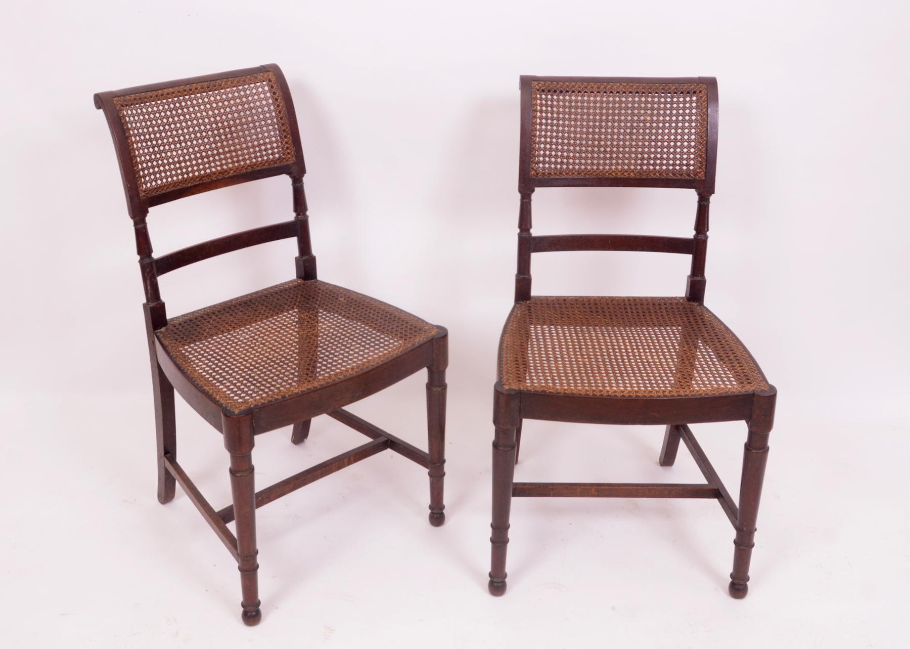 Par de cadeiras mogno assentos e costas de palhinha inglesas séc. XIX pequenos defeitos Dimensões (altura x comprimento x largura) - 88 x 49 x 55 cm