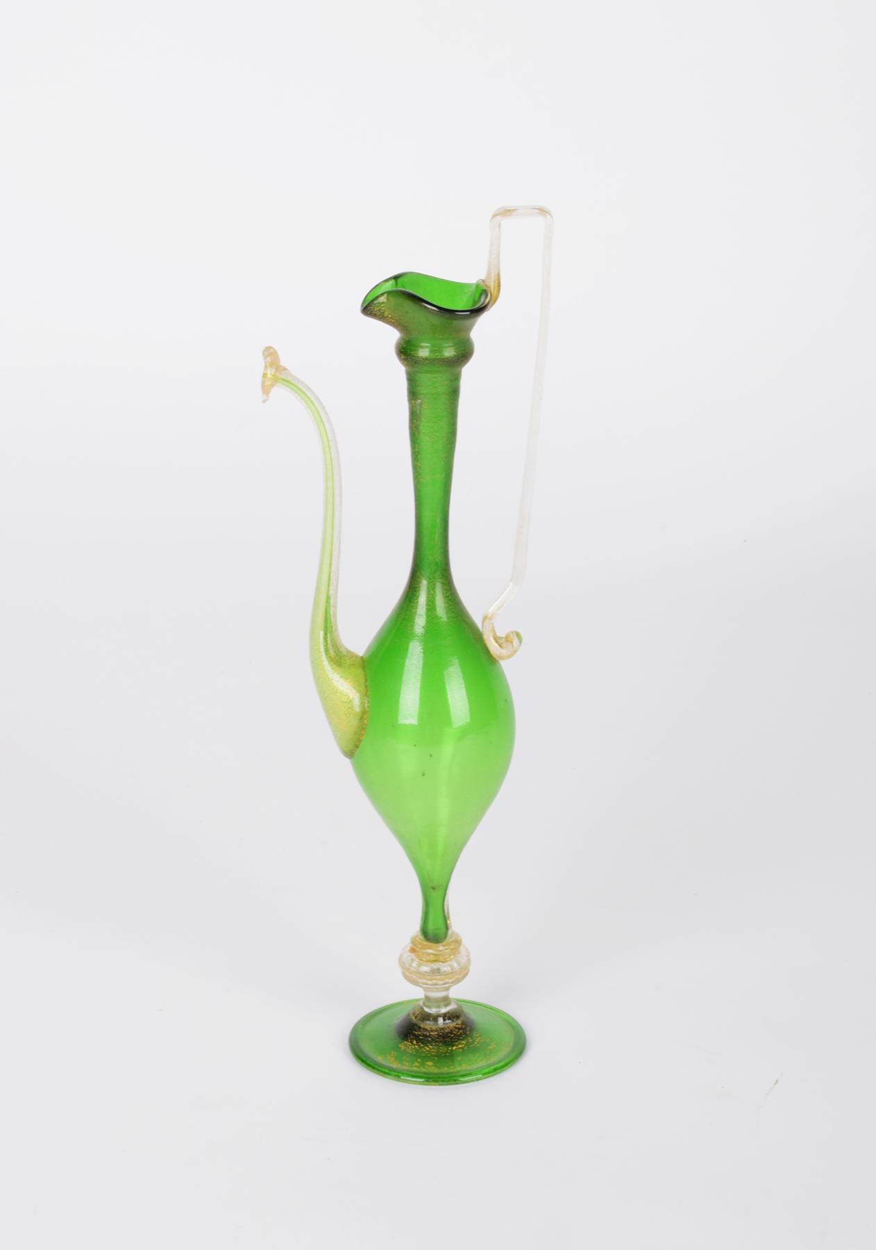 Gomil Murano vidro verde e incolor decoração a dourado italiano séc. XIX/XX desgaste no dourado restos de etiqueta com marca não identificada Dimensões (altura x comprimento x largura) - 33,5 cm