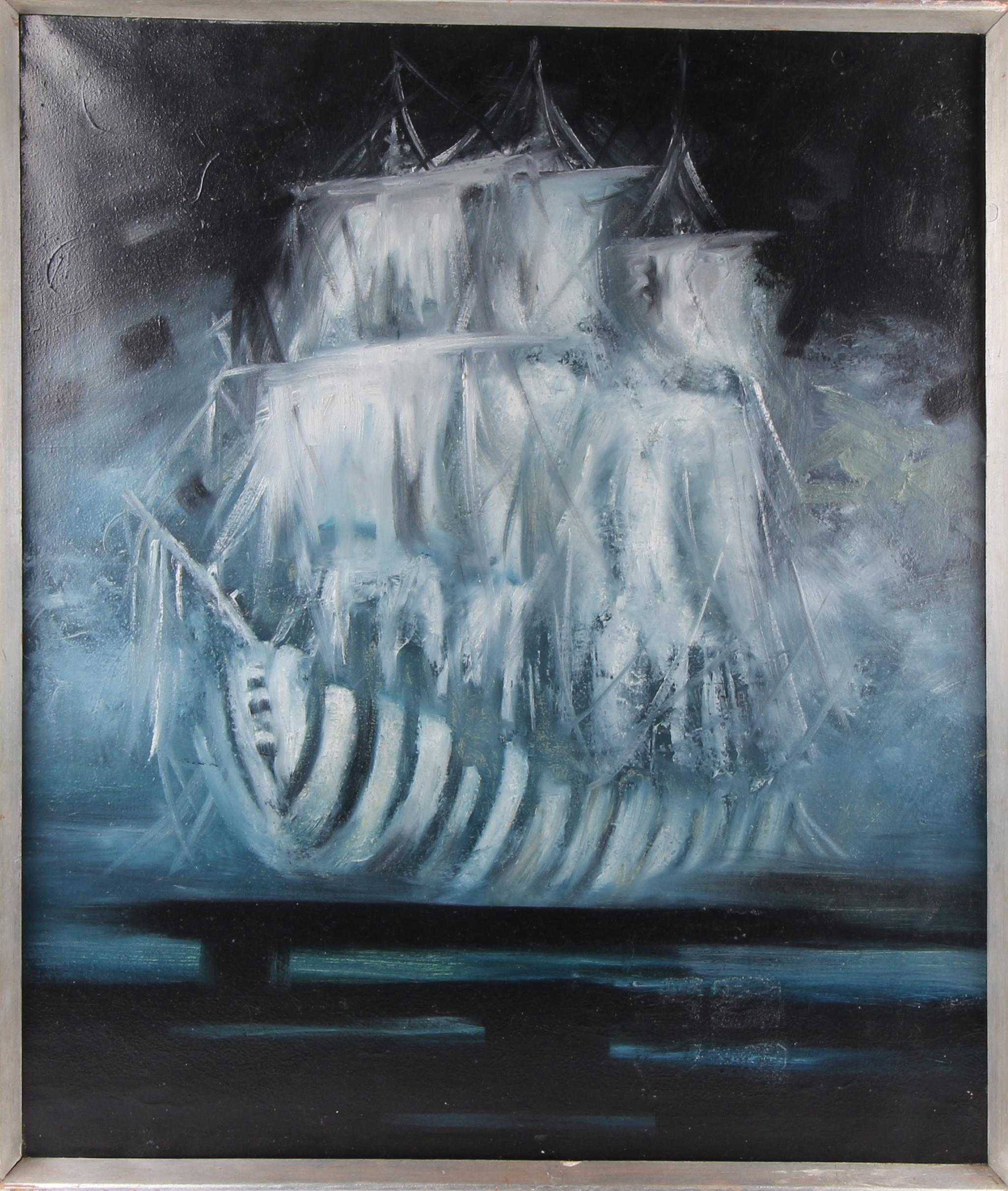 Caravela óleo sobre tela séc. XX provavelmente da autoria de Jorge Brandeiro - 1927-2000 Dimensões (altura x comprimento x largura) - 100 x 85 cm