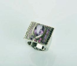 gold set with amethysts, sapphires, rubies,