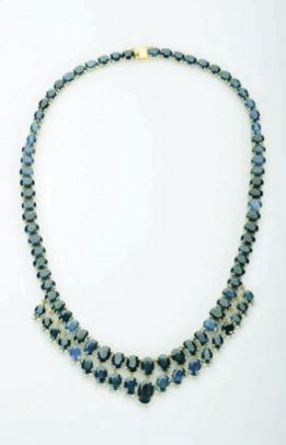 gold (18 kt.) set with 88 oval-cut sapphires (circa 70 ct.)