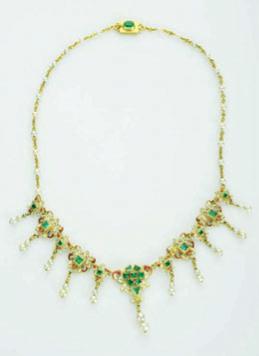 gold, polychrome enamels, natural pearls and Columbian emeralds,