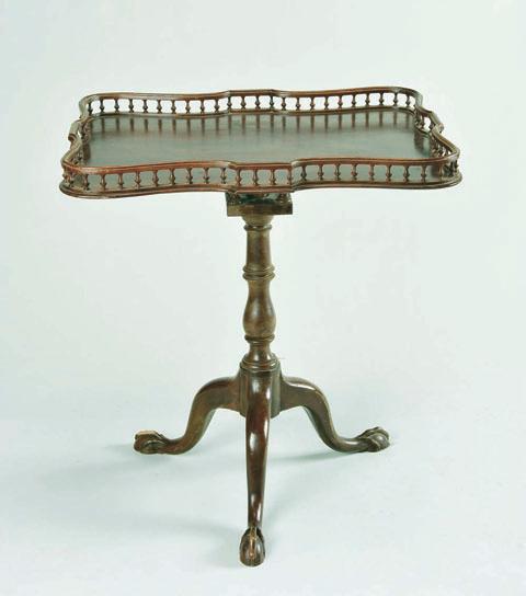 mahogany, scalloped tip top with gallery, zoomorphic feet,