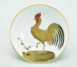 decoração a laca dourada e vermelha “Galo e galinha”,