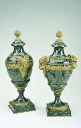 mármore verde, aplicações em bronze “Cabeças de bode”,