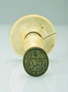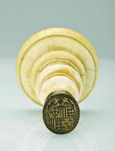bronze stamp with quarterly shield: