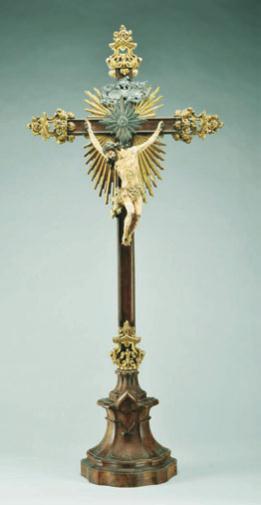 cruz em pau-santo com entalhamentos dourados