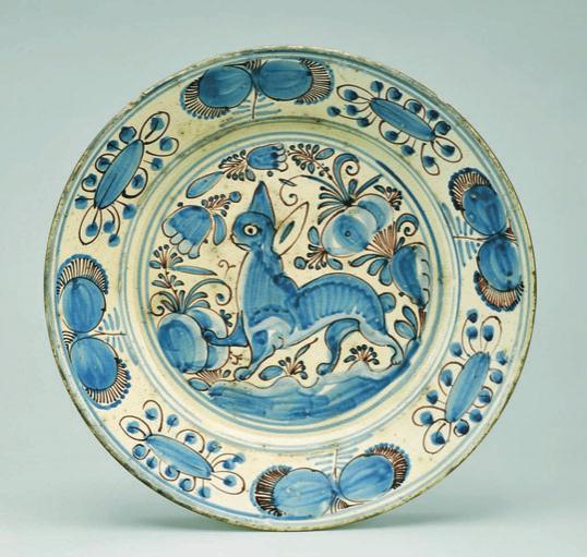 blue and vinous “Aranhões” decoration “Landscape with rabbit”,