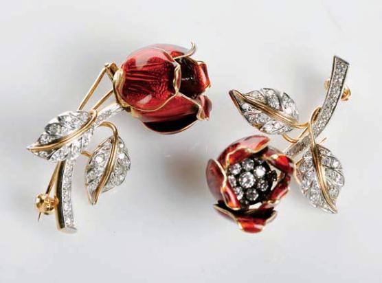 ambos os alfinetes com sistema para abrir e fechar as pétalas,