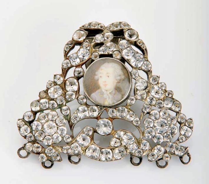 moldura do séc. XVIII em prata perlada cravejada com quartzos