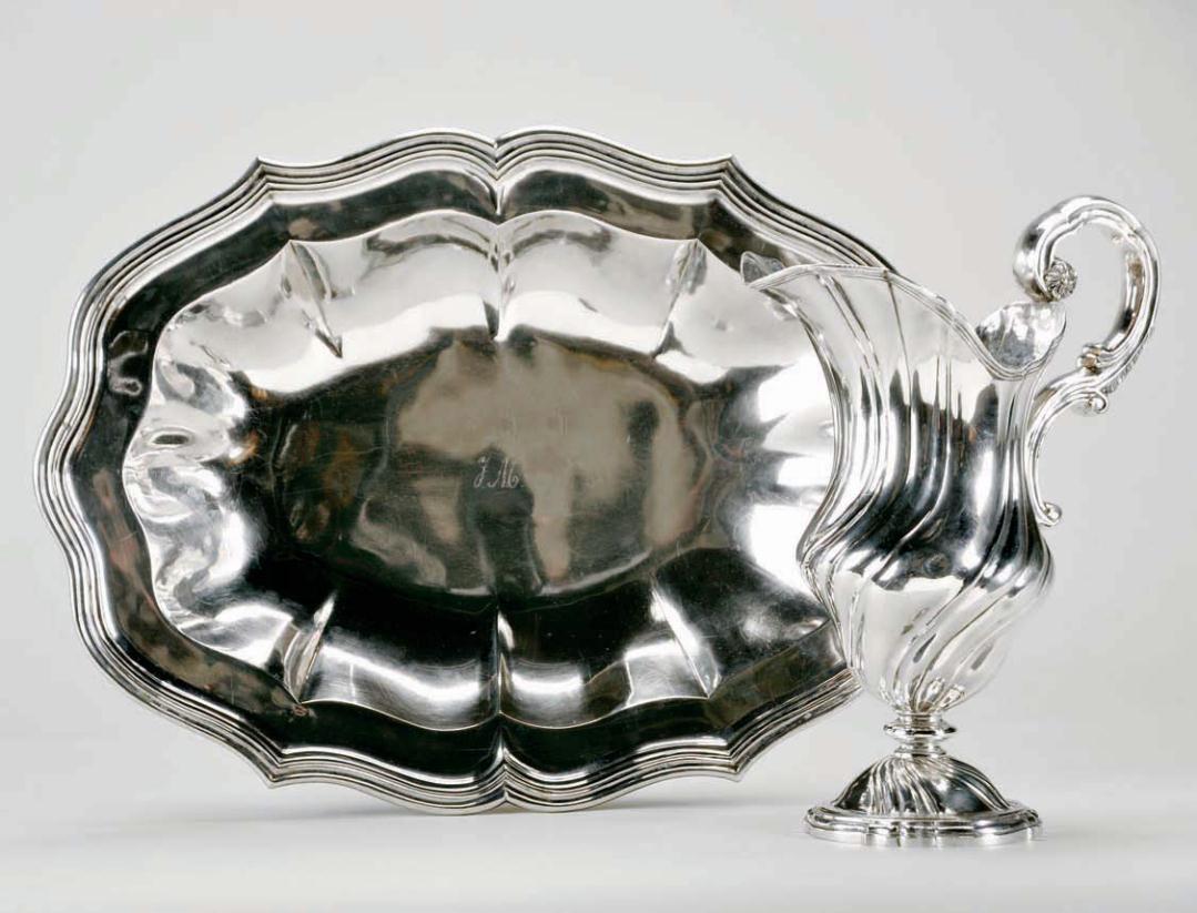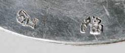 swirled and monogramed JM silver, Lisbon assay mark (1750-1770),
