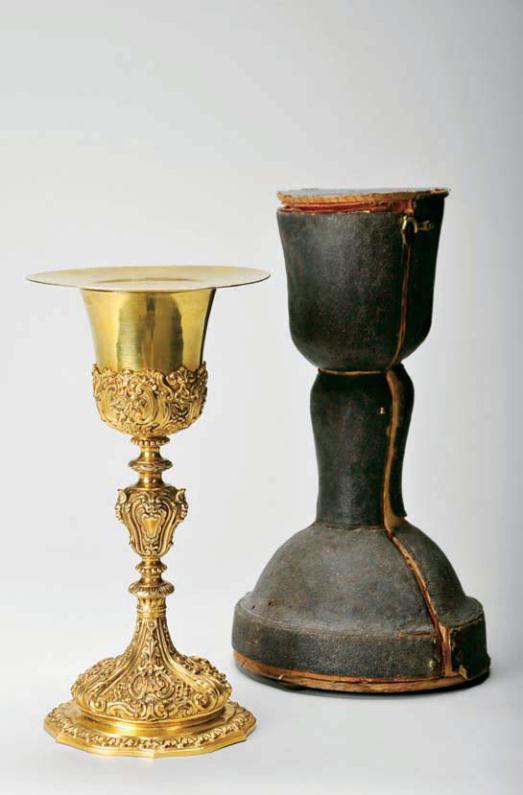 wood lined in shark skin, iron mounts, interior lined in fabric,