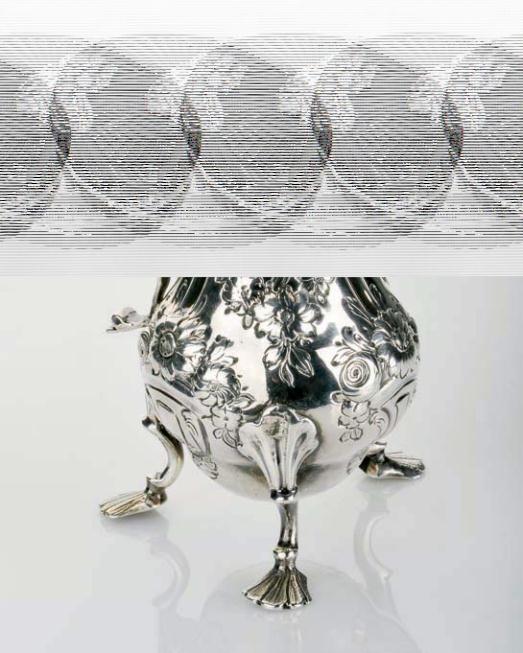Jorge II, prata, decoração relevada “Flores”, pés em pincel, marca