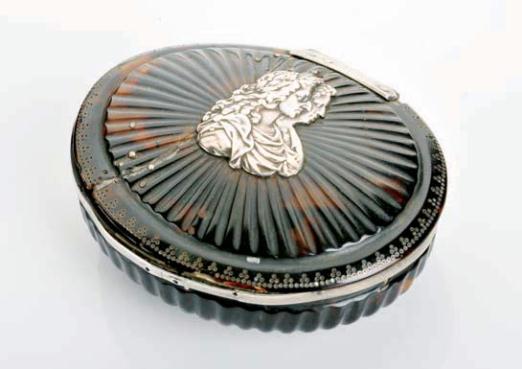 tartaruga gomada e gravada, aplicação em prata “Bustos de casal real”,