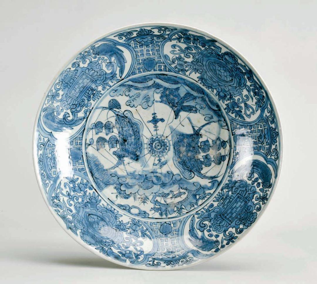 Swatow, Chinese porcelain, blue decoration of “Maritime evocation”,