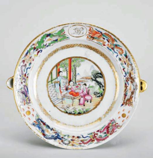 “Oriental figures in a garden” and “Dragons”, reserve with monogram,