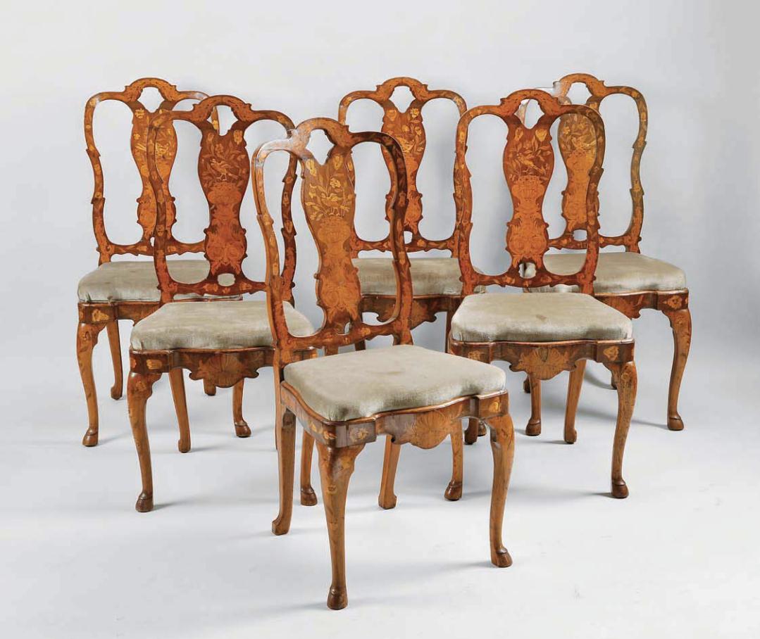 walnut with inlaied satinwood and boxwood “Birds, flowers and shelly”,