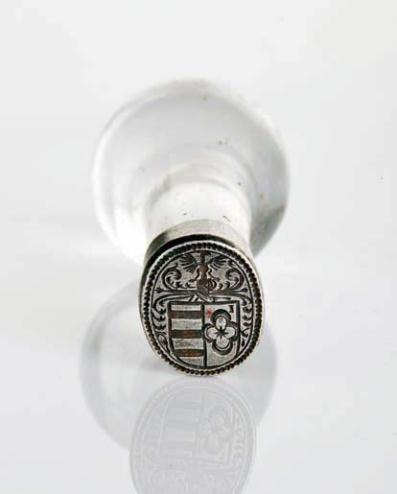 rock crystal, silver stamp, shield with the arms of Carvalho,