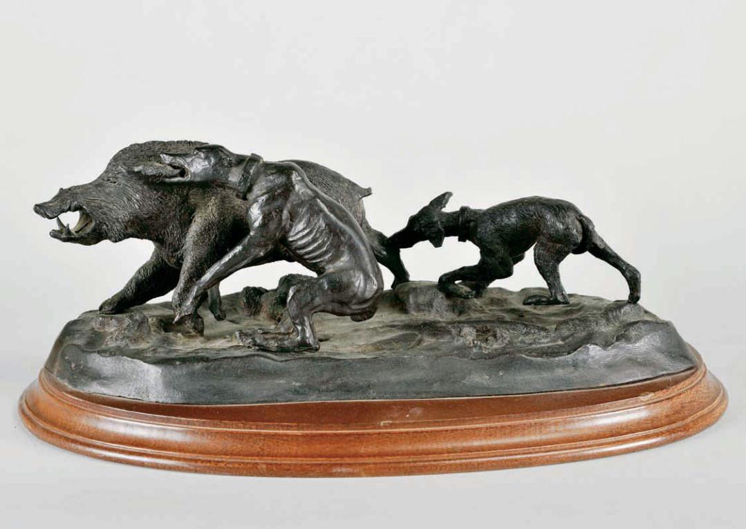 “A boar attacked by hunting dogs”,