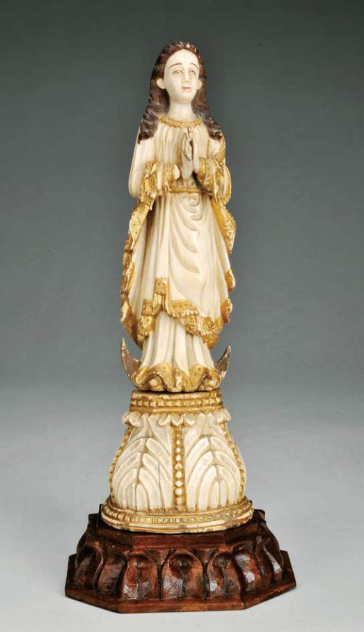 Lusíada, ivory sculpture with gilts, ivory socle,