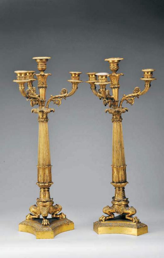 Empire, gilt bronze, fluted and relief decoration, zoomorphic feet,