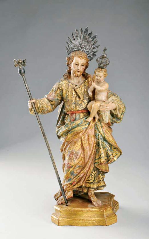 baroque, pair of polychromatic wood sculptures, Portuguese, 18th C. (1st half),