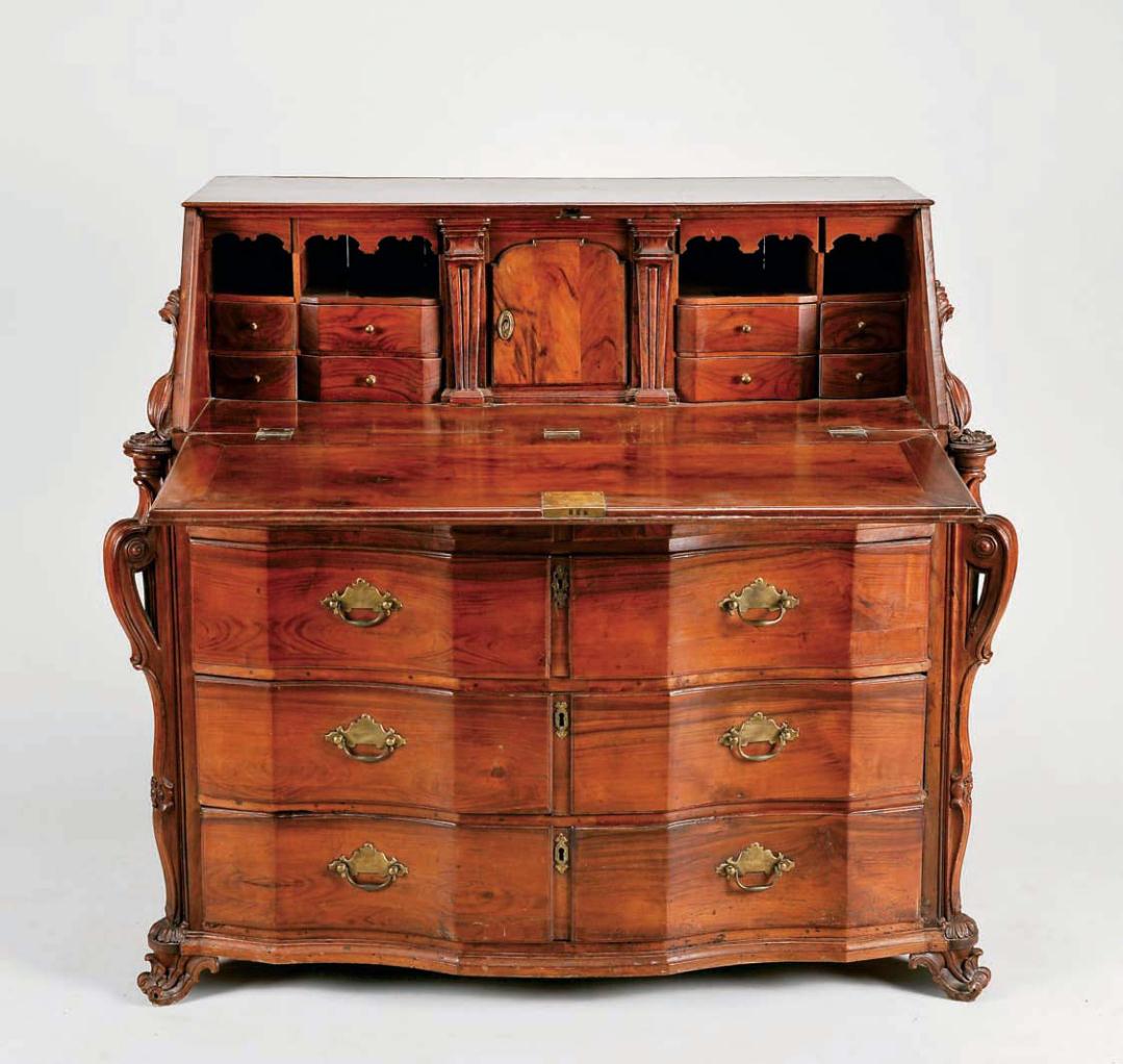 interior com gavetas e escaninhos, ferragens em metal amarelo,