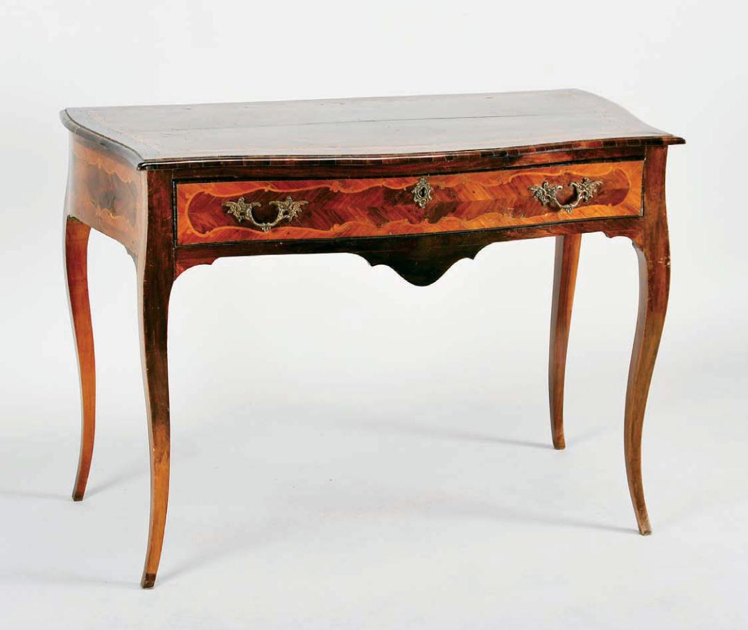 Brazilian rosewood, kingwood and thornbush marquetry,