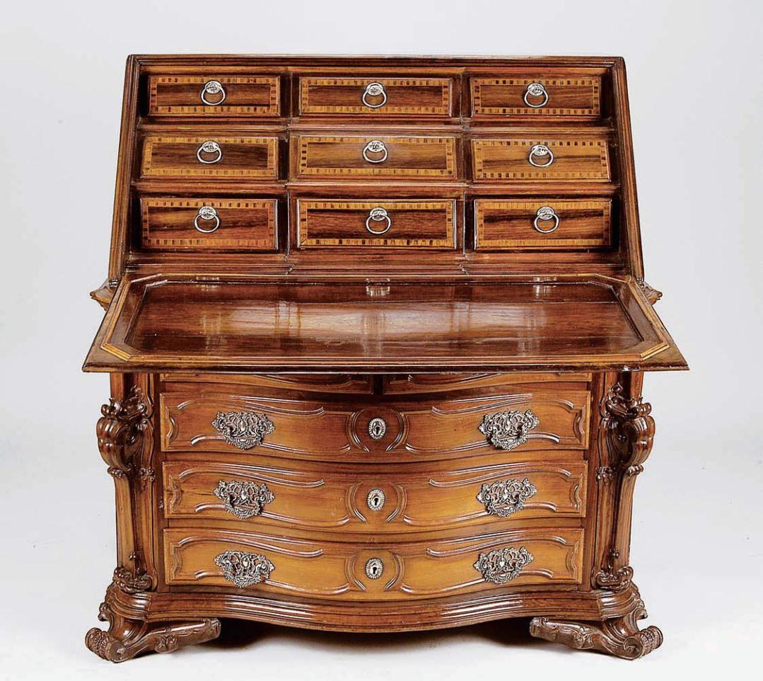 frentes das gavetas com filetes de pau-santo e pau-rosa,