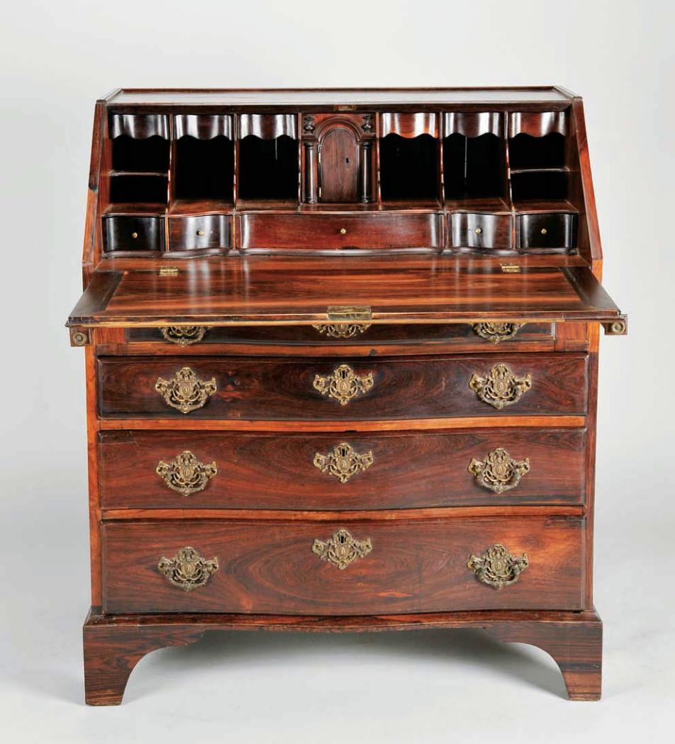 Brazilian rosewood, interior with drawers and pigeon holes, bronze mounts,