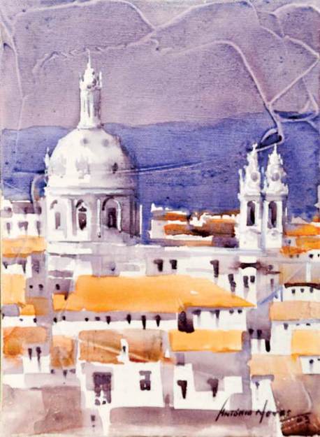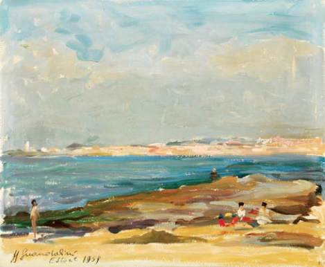 óleo sobre tela colada em cartão, assinado e datado de 1958