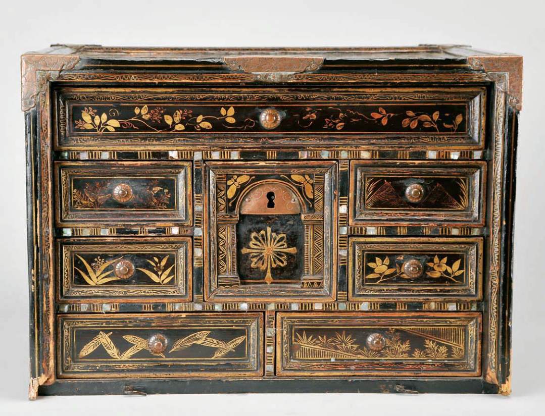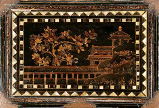 incrustações de madrepérola e pinturas a ouro,