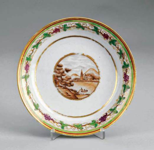 “Vines and grapes”, sepia reserves “European landscape with figures”,