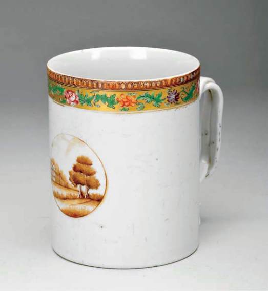 decoração policromada e dourada com reserva “Paisagem europeia”,