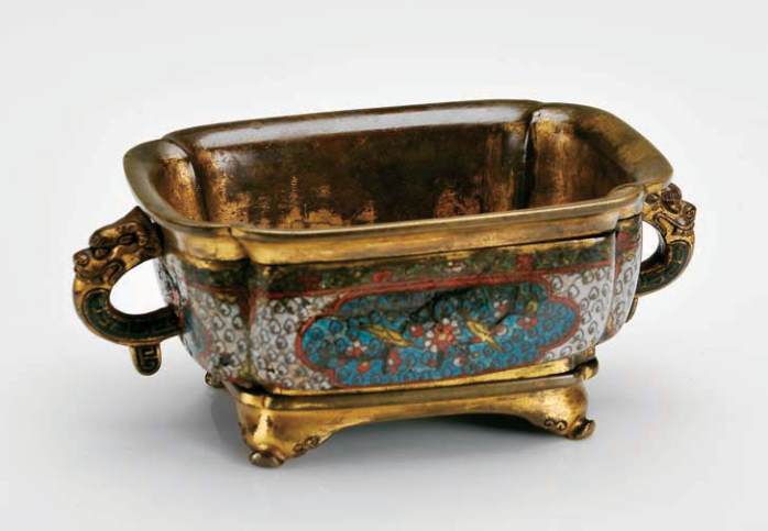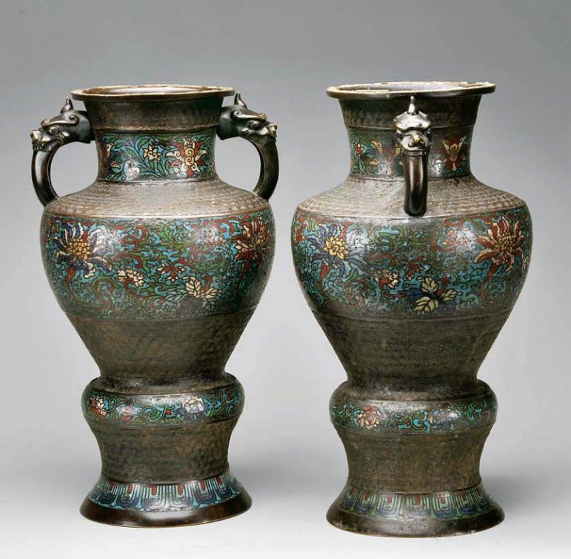cloisonné metal and relief and gilt bronze,